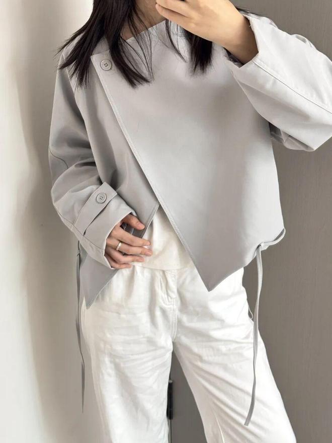 加上斜扣款保留了oversize的时髦设计,更适合亚洲人身材,上身不紧绷却有型,非常显气质。整件衣服的垂感都特别好,自然垂落,随便一穿就超有范儿。