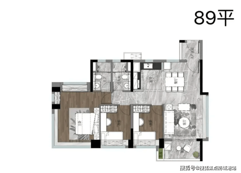 81-89平方米三房两卫是项目的主力户型,也是市场上的爆款产品,深受购房者青睐。这个户型最大的亮点就是超高的得房率,根据项目官方数据,得房率可达105%,这在广州楼市中是十分罕见的。