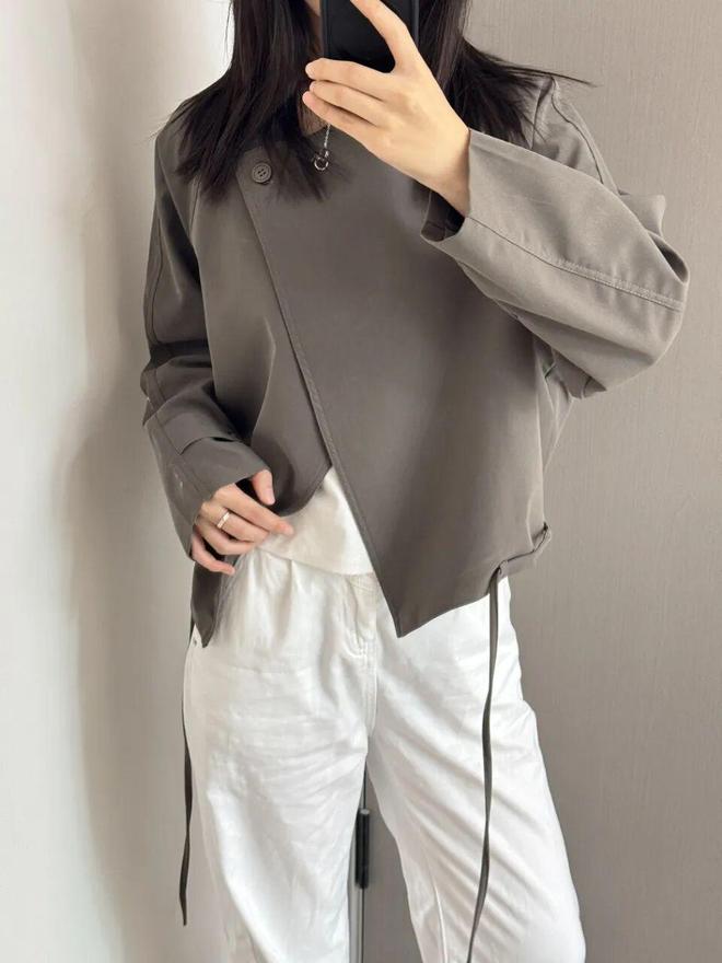 加上斜扣款保留了oversize的时髦设计,更适合亚洲人身材,上身不紧绷却有型,非常显气质。整件衣服的垂感都特别好,自然垂落,随便一穿就超有范儿。