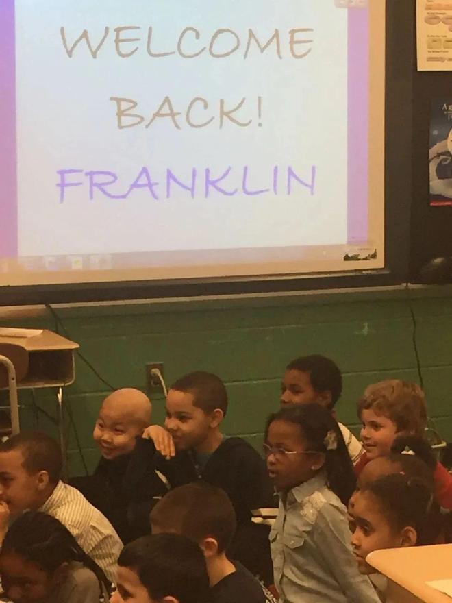 第二是福福回到学校的那天,医院专门派了个护士一起到学校,给同学们上了一堂科普课,用孩子们能听懂的语言介绍了福福得了什么病,经历了什么治疗,为什么是光头,为什么会更容易累,和福福接触要注意什么,等等。